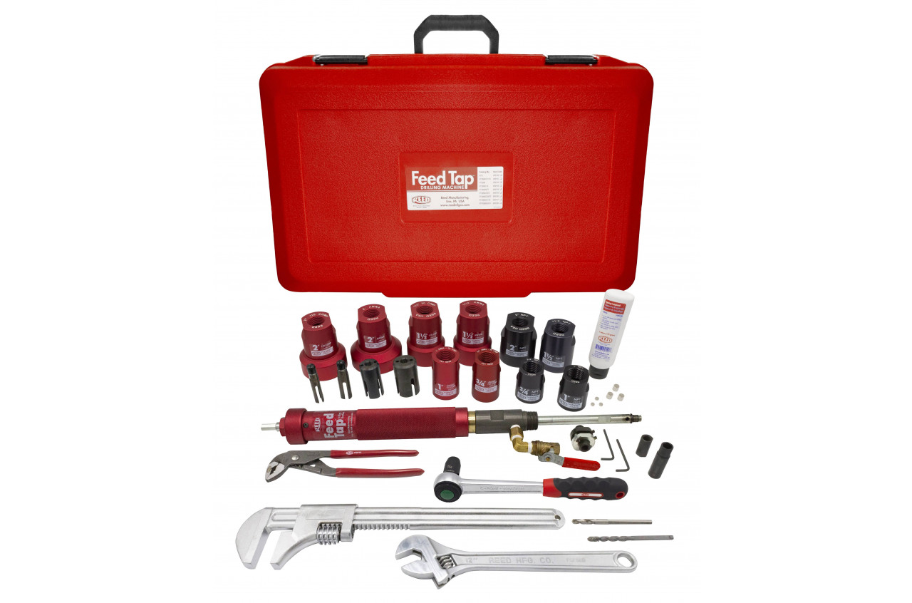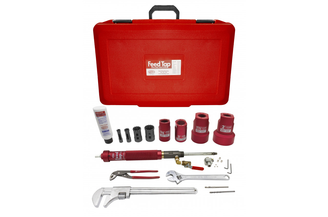 Feed Tap™ su tesisatı aracı, bir servis kelepçesine yerleştirilen bir korporasyon vanası kullanarak PVC, PE, dökme demir ve sfero döküm borular üzerinde basınç altındayken delme işlemi yapar. Kompakt tasarımı ve ayrı, bağımsız besleme kontrolü; dökme demir, sfero döküm veya PE için delme işleminin bir matkap (dahil değildir) kullanılarak tamamlanmasına olanak tanır. PVC, CPVC ve benzeri plastik borularda kullanım için manuel güç gereklidir. Bağımsız besleme kontrolü, Uni-Bell PVC Boru Birliği tarafından önerildiği şekilde PVC borunun delinmesi için gövde frezesini ilerletir.