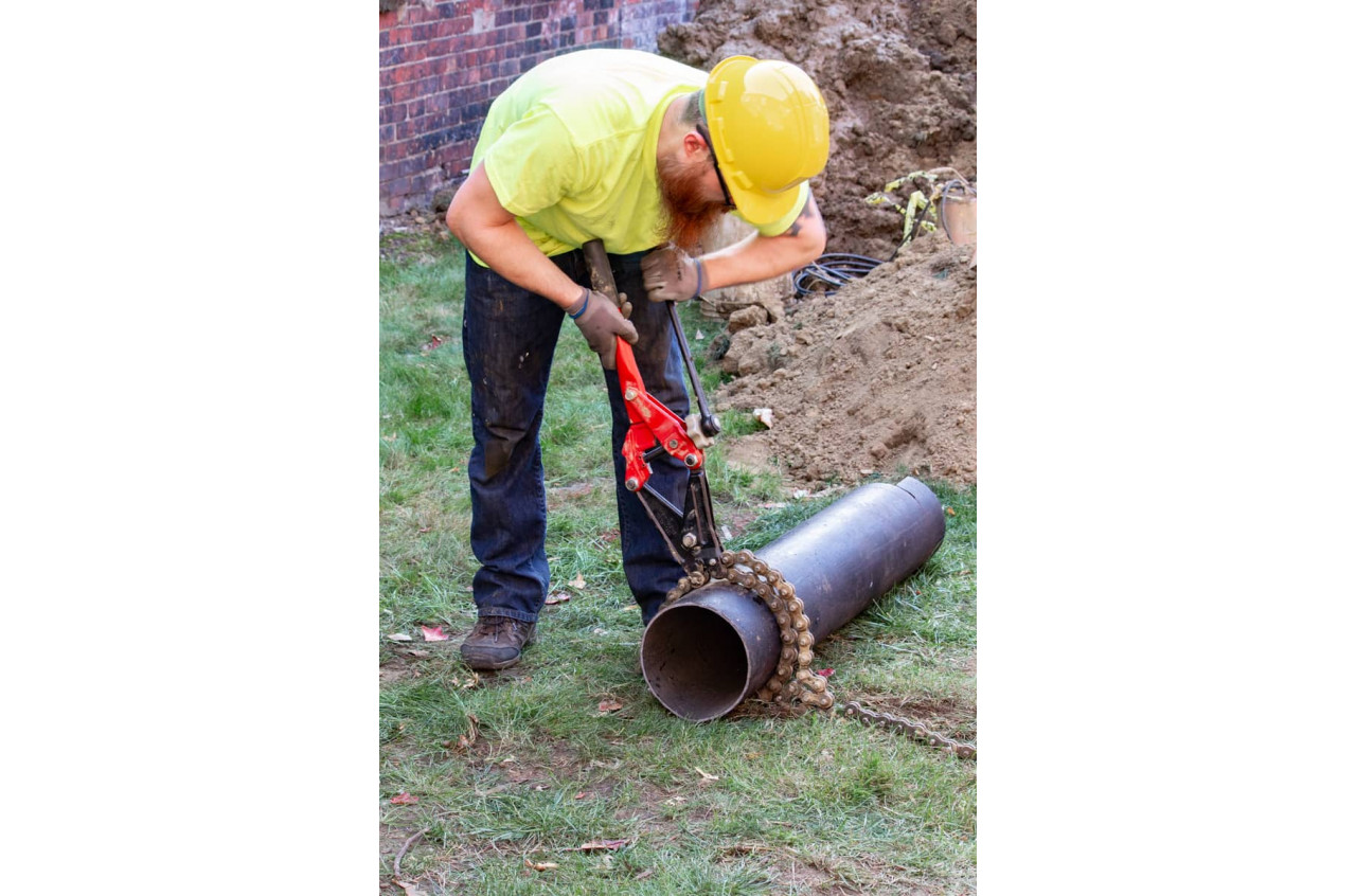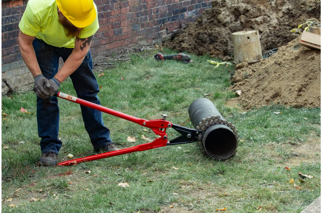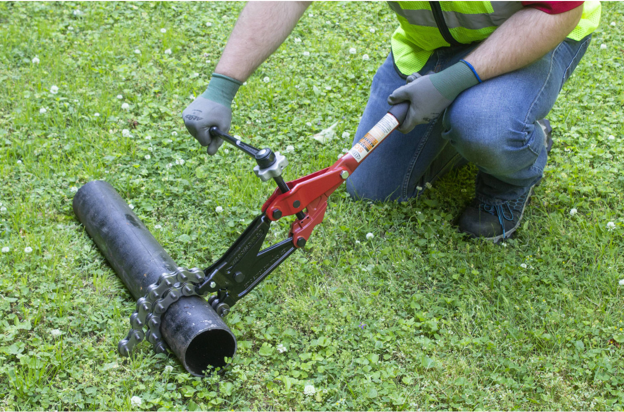 - Toprak borusu kesiciler, boruyu kırmak için zincir basıncı uygular.